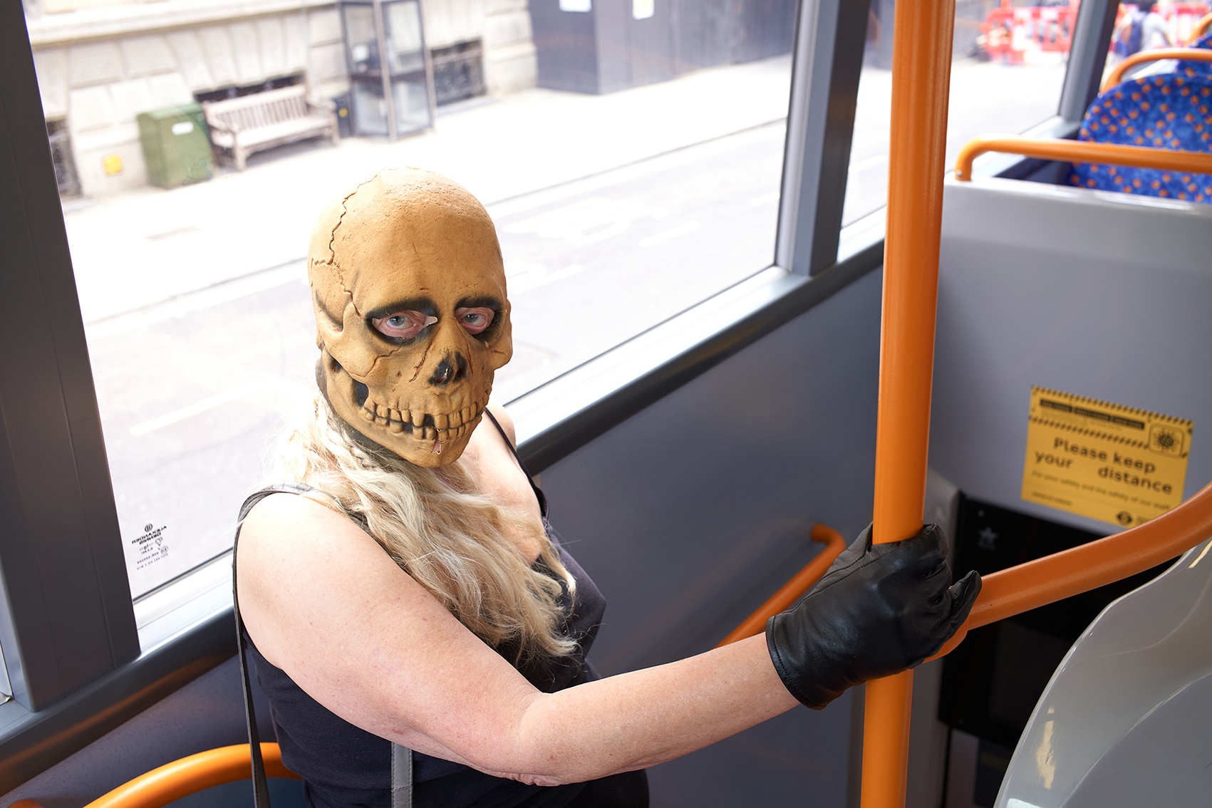 In this collaborative work, Rosy Martin and Verity Welstead playfully examines the effects of isolation and social distancing. From acknowledging grief and loss, then making tentative moves towards escape whilst expressing the fears of breaking lockdown rules. Taking the measures of social distancing and the restrictions of masking, they then ventured out onto public transport. This work thus travels through trauma, anxiety, rage, grief, sadness, breaking the rules with defiant energy, finally embracing a punk aesthetic.